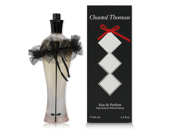 Podobnie jak bielizna, Eau de Parfum od Chantal Thomass to absolut kobiecości. Wspaniały zapach, który podkreśla piękno kobiety. Niewidoczny, ale bardzo realny i skuteczny sposób uwodzenia. Elegancja czarnej satyny, gorsetowy element zapięcia i mała czerwona kokardka, zupełnie jak usta Chantal Thomass. Flakon przewiązany elementem damskiej garderoby przywołuje na myśl miękką skórę muśniętą pudrem. Symboliczna czarna podwiązka, ukośnie zawiązana wokół flakonu jest seksownym detalem uzupełniającym flakon i jednoznacznym nawiązaniem do bielizny Chantal Thomass. Współczesnym kobietom Chantal Thomass poprzez tę klasyczną kompozycję oddaje cząstkę siebie – historię kobiety odkrytej i oferuje zarazem przyjemność perfumowania się – osobiste przesłanie. Nowoczesna interpretacja w nucie głowy to malina, która jak magiczne zaklęcie zachwyca, urzeka i oczarowuje. W nucie serca upajają: ciepłe i zmysłowe róży, odrobinę „kosmetyczne” dzięki nucie czarnego fiołka. Spowija całe ciało nutą głębi, która wyraża pragnienie czysto cielesne dzięki mocy pudrowego piżma.