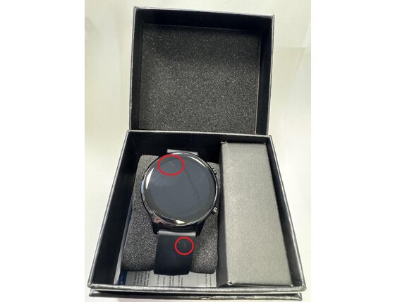 Zegarek minimalnie noszony, brak folii ochronnej, w pełni sprawny. Uszkodzenia widoczne na zdjęciach.