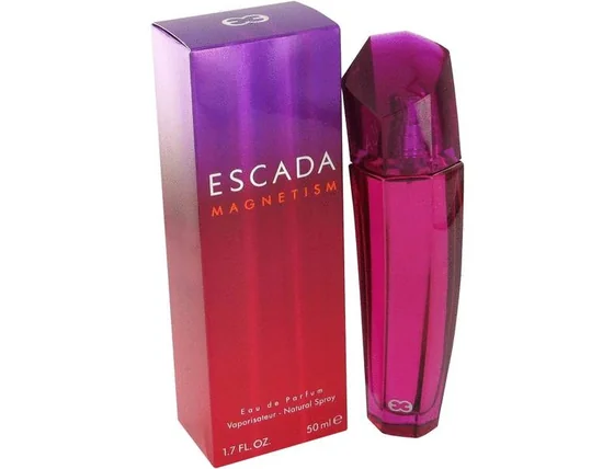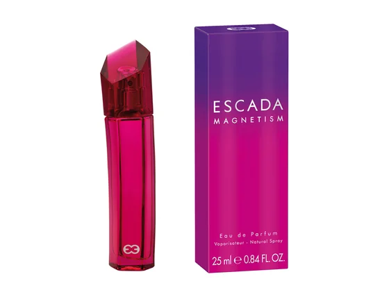 Magnetism stworzony został przez Pierre’a Bourdona i Steve’a DeMercado w 2003 roku. To propozycja dla wyjątkowych, żyjących dla miłości, nieco tajemniczych pań. Perfumy podkreślają siłę ich oddziaływania na otoczenie. Kobieta Escady jest pełna pozytywnej energii, przyciąga swym naturalnym urokiem. Zna swoją wartość, co daje jej siłę, by spełniać swe pragnienia. Magnetism to słodki, owocowy koktajl przyprawiony orzeźwiającymi ziołami połączony z bukietem wspaniałych, eleganckich kwiatów: delikatnej magnolii, eleganckiej róży, zmysłowego jaśminu. Kompozycję dopełniają ciepłe, hipnotyzujące nuty sandałowca, wanilii, bursztynu i piżma. Całość to połączenie delikatności i magnetycznej zmysłowości. Idealna dla uwodzicielskiej, pewnej siebie kobiety, która swym uśmiechem oczaruje każdego. Flakon Magnetism jest prosty i strzelisty. Pełna energii, wibrująca czerwień szkła hipnotyzuje i przyciąga. Całość budzi skojarzenia z magicznym kryształem, lub nowoczesną rzeźbą. Jedno jest pewne – jej zawartość jest stworzona dla równie zagadkowej, nietuzinkowej kobiety.