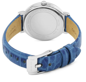 Chirekeristics: Case - Stal Rozmiar - 33x8 mmmet - skóra, niebieska - ferry - kolor -kolumnowy kolor - srebro - obowiązki minerałów - 5 atmosfery - modne - novy