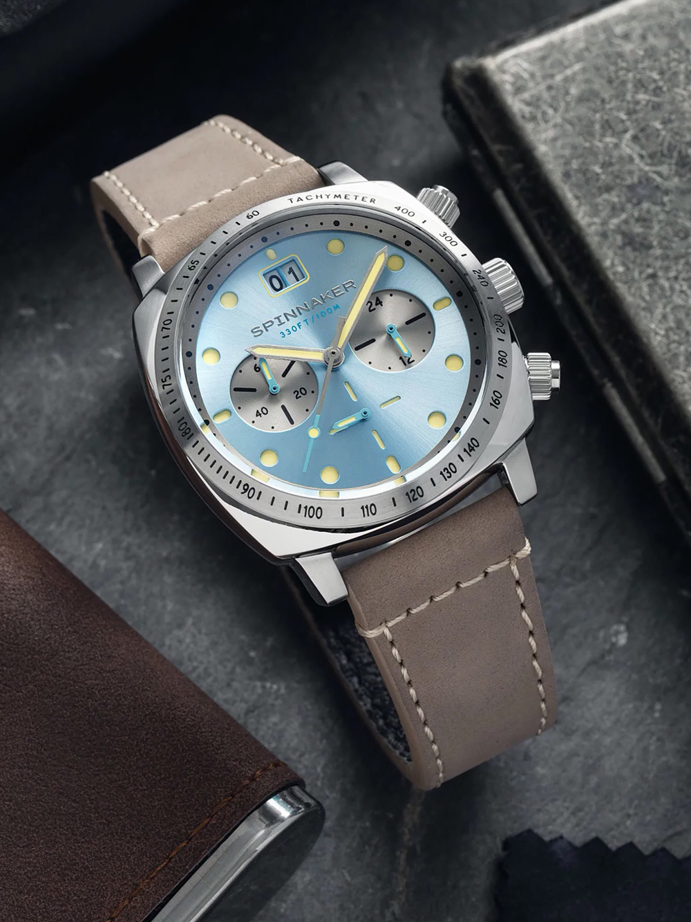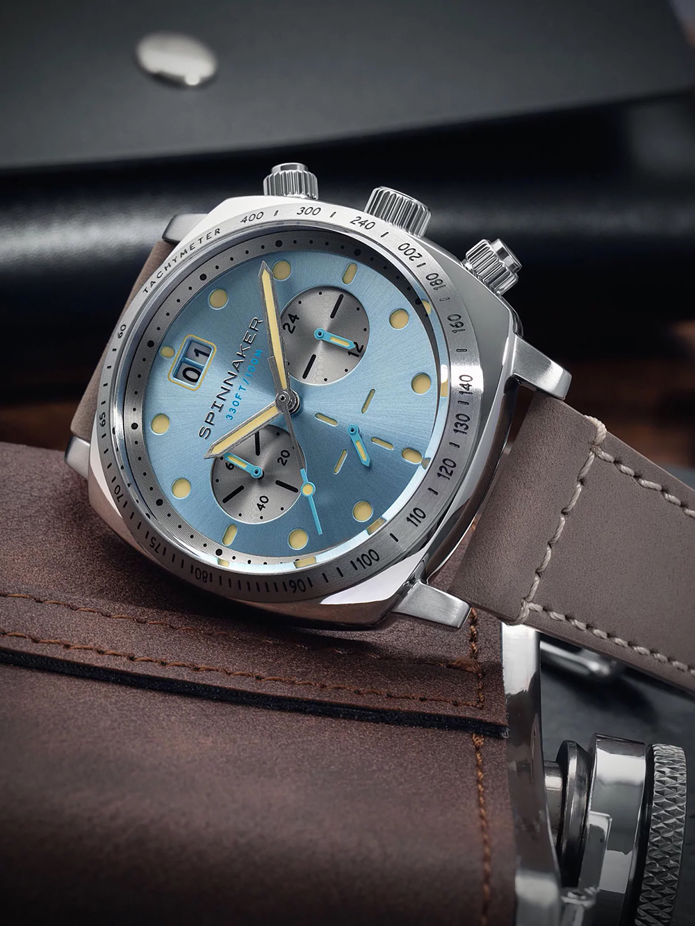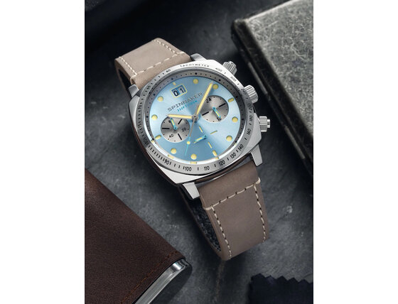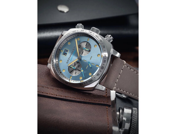Spinnaker SP-5068-04 Mens Watch Hull Chronograph Sky Blue 42mm 10ATM