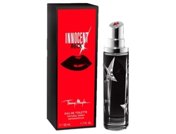 Thierry Mugler Angel Innocent Rock to kwiatowo-owocowy zapach, limitowana edycja na rok 2008. Perfumy są przeznaczone dla wszystkich nieokiełznanych osobowości, które kochają muzykę, gdyż to właśnie ona zainspirowała ten zapach. Składniki zapachu biją rytmem rocka i popowej muzyki tanecznej. Perfumy to zmysłowa kombinacja grejpfruta, czarnego pieprzu, róży i lichee. Zapach jest odpowiedni dla wszystkich kobiet, które zachowują się zgodnie z swymi aktualnymi upodobaniami. Mogą być niewinna jednego dnia, a następnego dnia zaskoczą cię zmysłowością i prowokacyjnością, której nie spodziewałeś się po nich. Nie ma okazji, do której te perfumy nie byłyby idealne, są odpowiednie zarówno na dzień jak i na najbardziej uroczyste wieczorne okazje. Zapach jest idealny dla tajemniczych dusz, które nigdy nie zdradzają wszystkiego o sobie i chętnie ukazują swoje małe sekrety w najbardziej odpowiednich momentach. Z perfumami Thierry Mugler Angel Innocent Rock możesz być inna każdego dnia, zapach dostosowuje się do każdego nastroju i staje się twoją drugą skórą.