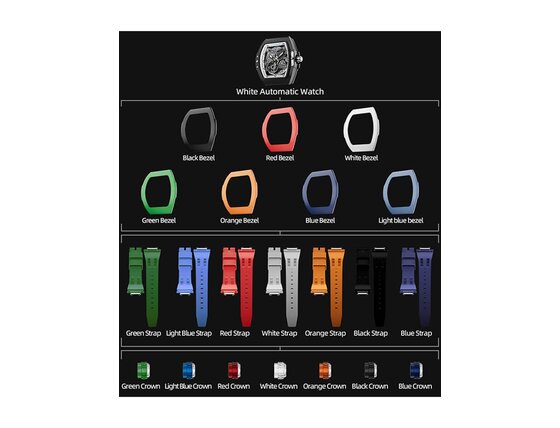 - Kolor paska: Niebieski, Zielony, Pomarańczowy, Czerwony, Czarny, Biały