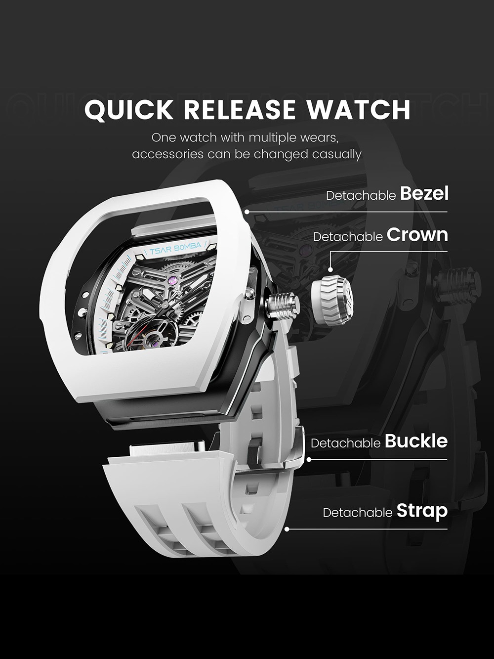 Tsar Bomba TB8218(1+7)FKM-06 Mens Watch Atomic Interchangeable Watch Combo Automatic 46mm 5ATM