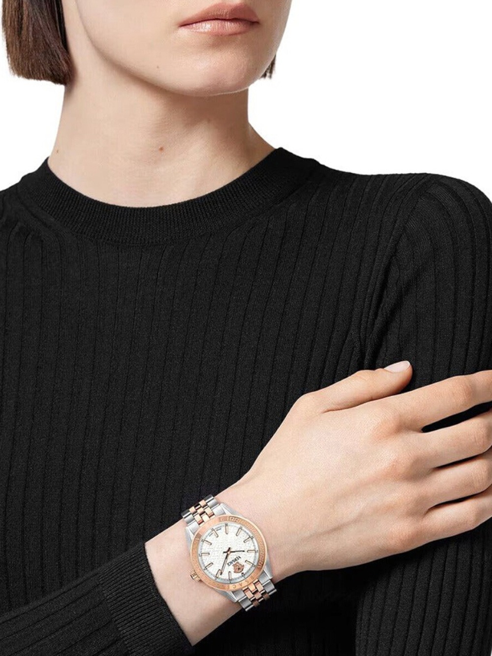 Nie czekaj więc i wzmocnij swój styl dzięki zegarkowi na rękę Versace VE8I00624 Ladies Watch V-Code 36mm 5ATM .
