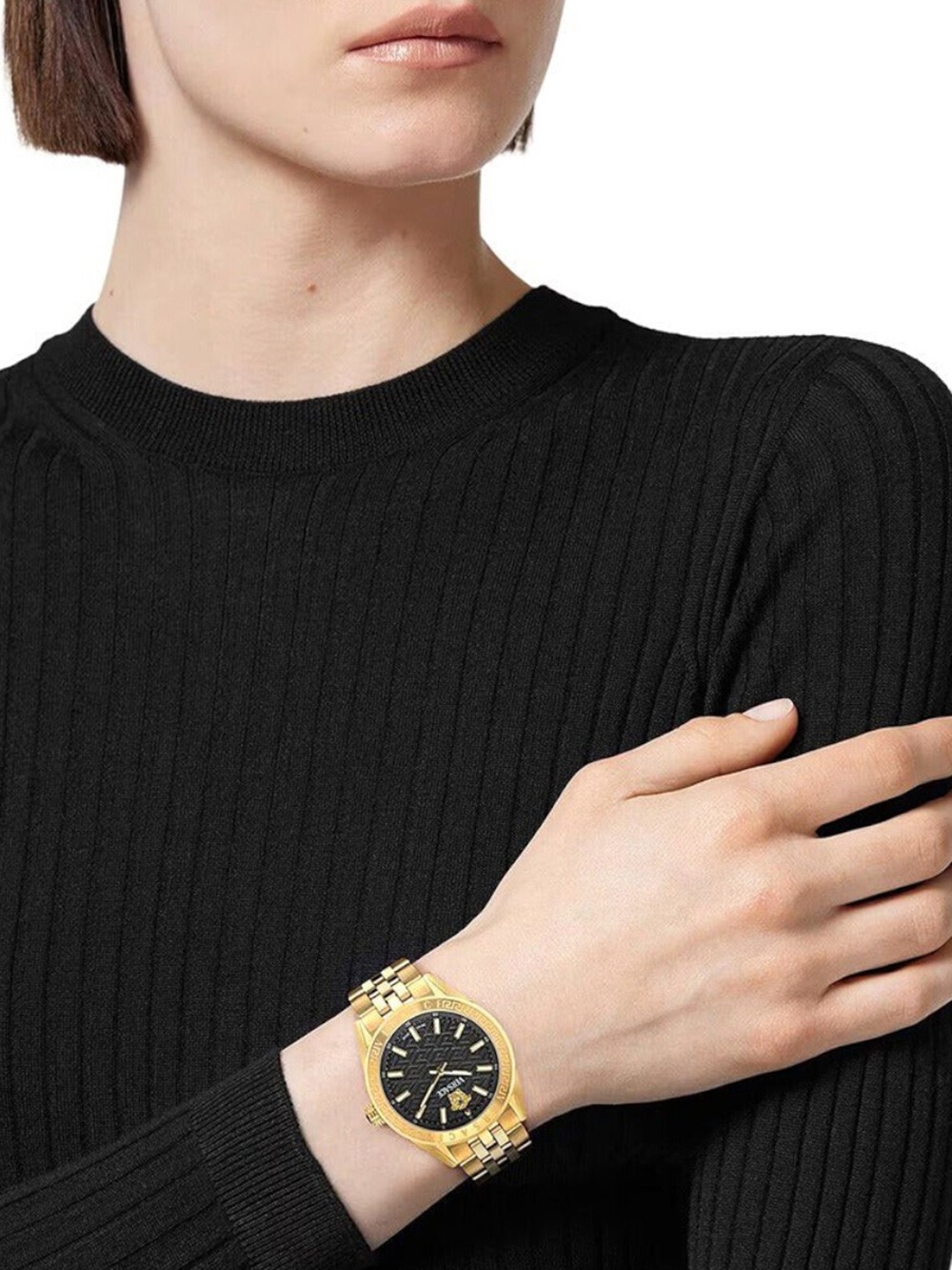 Nie czekaj więc i wzmocnij swój styl dzięki zegarkowi na rękę Versace VE8I00724 Ladies Watch V-Code 36mm 5ATM .